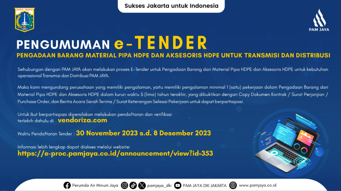 ARTIKEL PENGUMUMAN E-TENDER PEKERJAAN REHABILITASI JARINGAN PIPA DMA 15802 KAMPUNG MELAYU PAKET 3 Selengkapnya